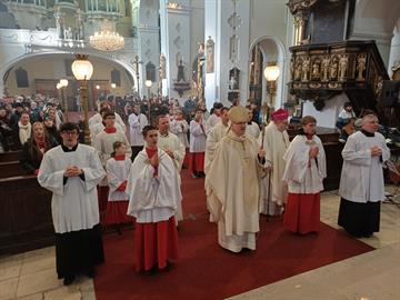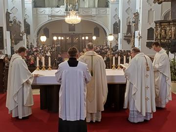 Po poledni pak biskup slavil společně s mladými lidmi mši svatou v městském kostele u Všech svatých.